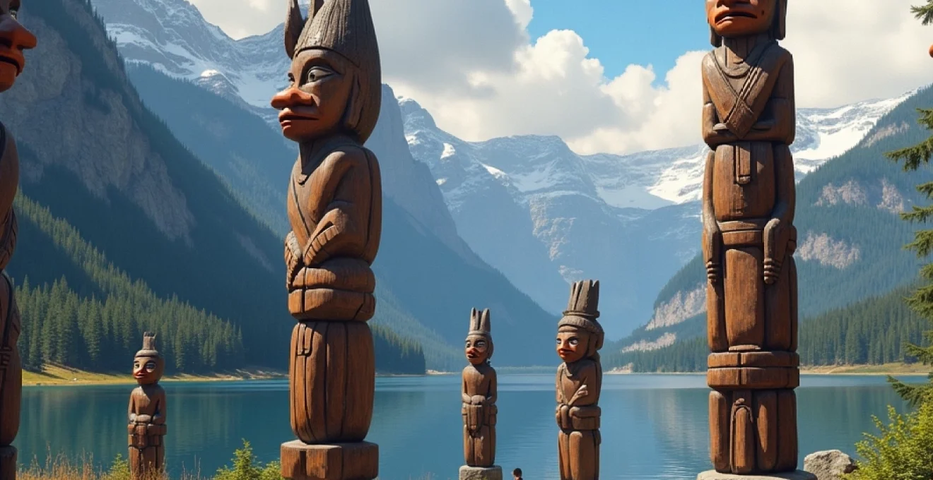 Les totems occupent une place centrale dans les traditions amérindiennes, particulièrement chez les peuples de la côte nord-ouest du Pacifique. Ces sculptures monumentales, généralement réalisées en bois de cèdre rouge, incarnent un lien sacré entre le monde des hommes et celui des esprits. Chaque figure, chaque symbole gravé raconte une histoire, transmet un enseignement ou marque un événement important de la vie de la communauté.